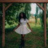 Fit: Tailored bodice with high-waist seam, flared pleated skirt